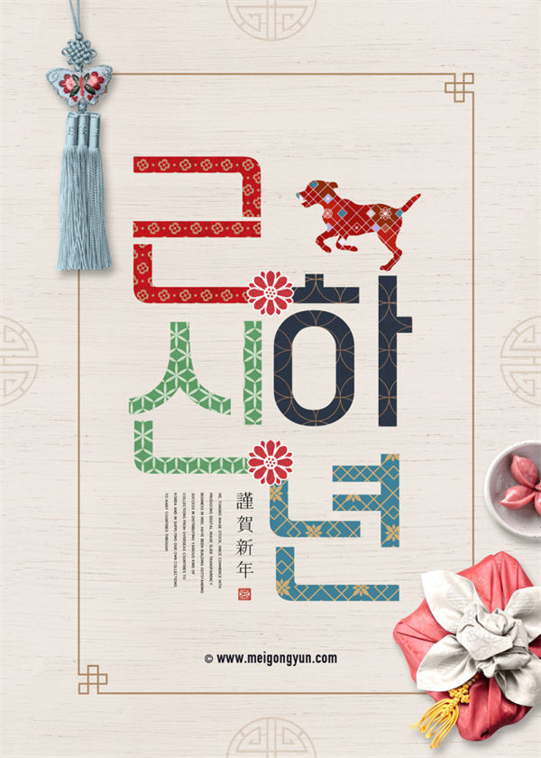 图穷联素材库 » 中国狗年春节特色PSD海报 Happy New Year