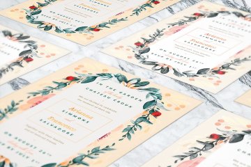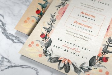 这种插图设计可能是优雅的春季或夏季婚礼的最佳选择。腮红,金色和黑色适合正式,花园,复杂甚至经典的婚礼。