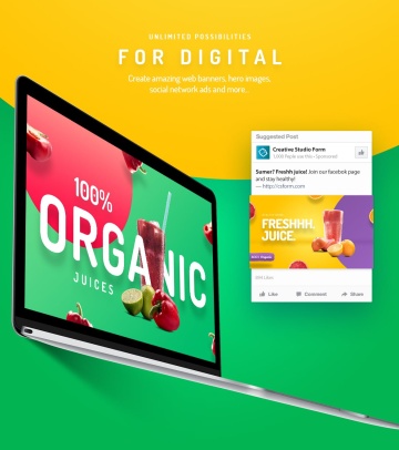 我们创造这个五颜六色和美丽的有机果汁模板,将帮助您制作出惊人的数字或印刷图形。