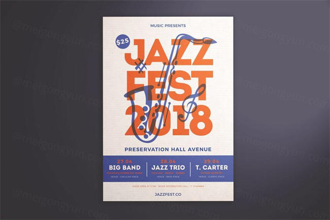 这个“爵士音乐节传单”非常适合推广爵士音乐活动或任何你想要的!