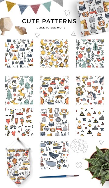 图穷联素材库 » 200+独特有趣的儿童节可爱矢量元素大集合Kids room - scandinavian design pack