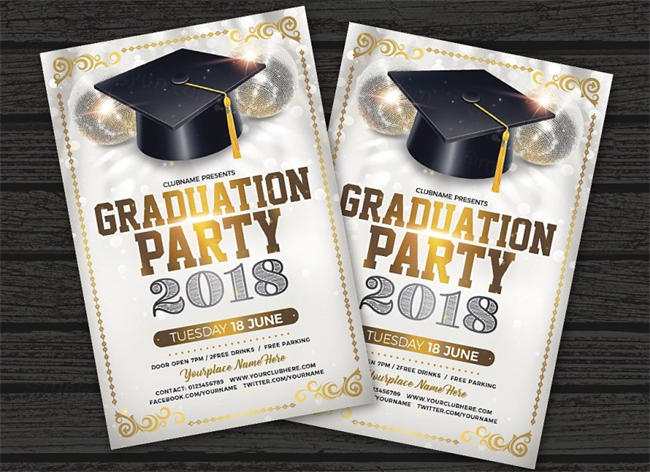 图穷联素材库 » 大气的毕业派对传单海报模板 Graduation Party Flyer Template