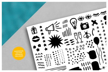 您还将获得一包所有使用过的手工矢量涂鸦作为.EPS和.AI以及访问易于遵循视频教程。