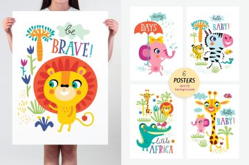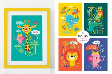 6个海报(彩色背景) - 6个矢量文件(10 EPS)+ 6个光栅图像(JPG,2480x3508像素)
