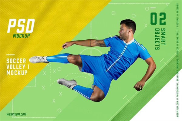 典型的足球广告PSD 模板Soccer Volley I PSD Mockup Template