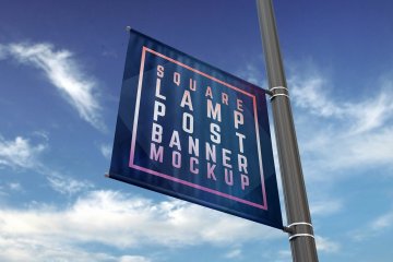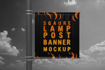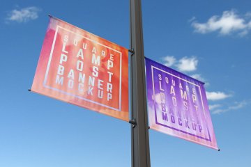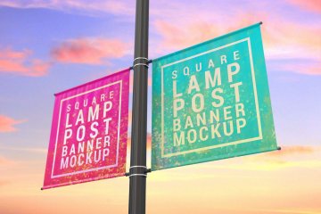 实用的房地产方形灯杆旗路旗道旗样机展示模型mockups Square_Lamp_Post_Banner_Moc...
