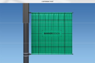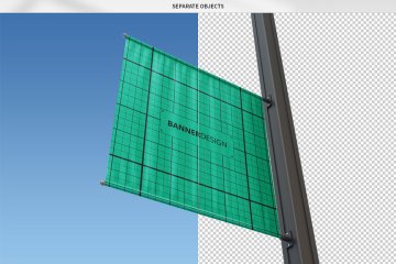 图穷联素材库 » 实用的房地产方形灯杆旗路旗道旗样机展示模型mockups Square_Lamp_Post_Banner_Moc...
