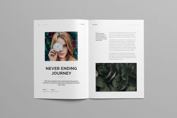 为杂志,目录组合制作的简洁干净的模板。该模板在InDesign中可完全编辑