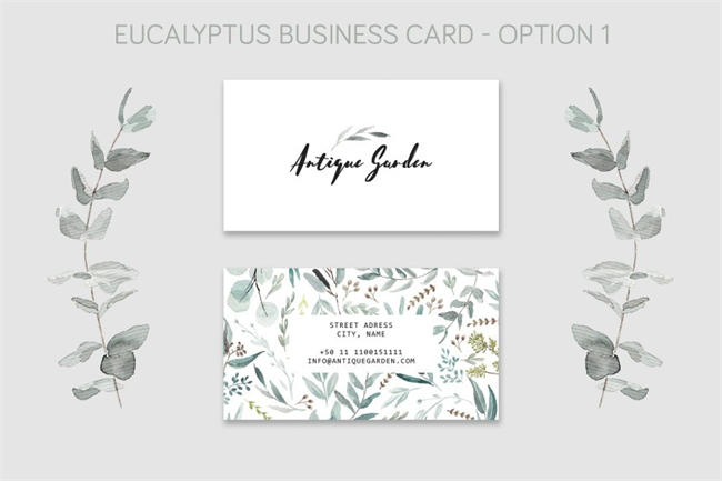 图穷联素材库 » 桉树文艺简约风名片矢量模版 Eucalyptus Business Card Template