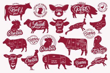 家畜屠宰市场矢量图形元素合集包 Big Butchery Set