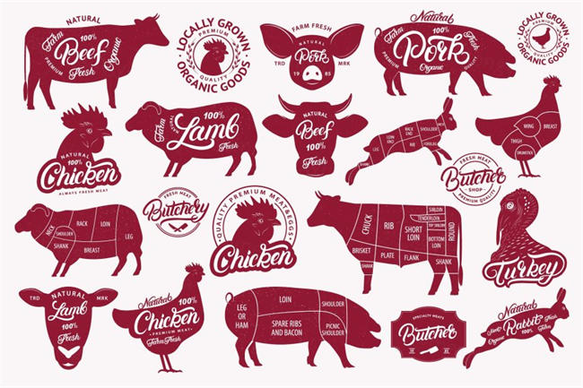 图穷联素材库 » 家畜屠宰市场矢量图形元素合集包 Big Butchery Set