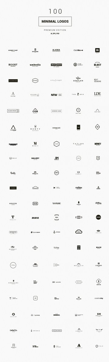 图穷联素材库 » 100个高级标志矢量模版素材 Minimal Logos - Premium Kit