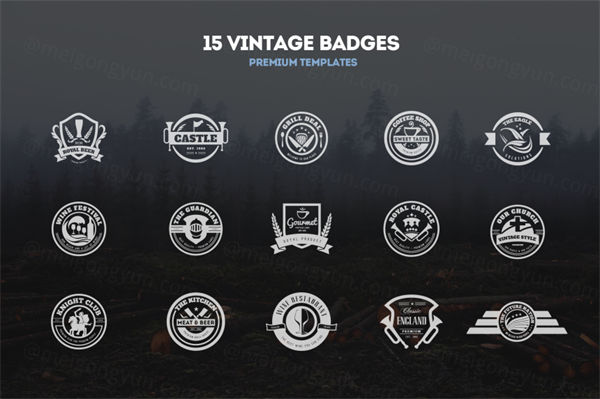 图穷联素材库 » 15组复古风格徽章商标模版素材 Vintage Templates , Badges , Logos