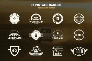 12组复古风格徽章商标模版素材 Vintage Logos Badges