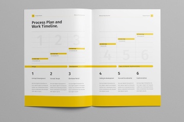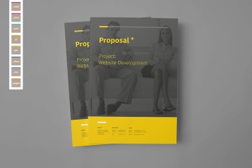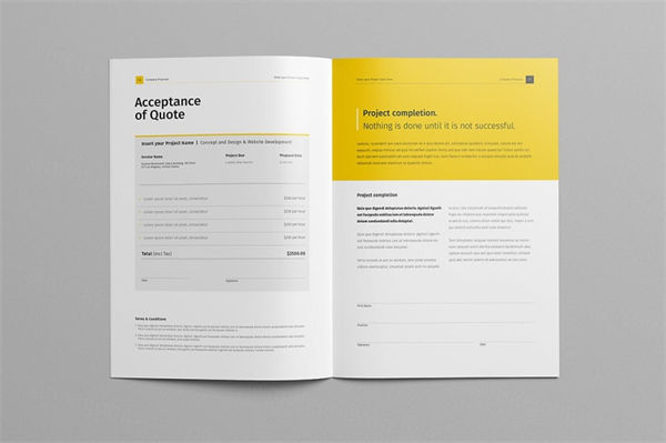 时尚高端简约配色的产品手册品牌手册楼书画册杂志设计模板,适用于创意企业的最小和专业提案宣传册模板,在Adobe InDesign,Adobe Photoshop,Adobe Illustrator,Microsoft Word和Apple Pages中以国际DIN A4和美国信函格式创建###此提案模板具有以下特点: