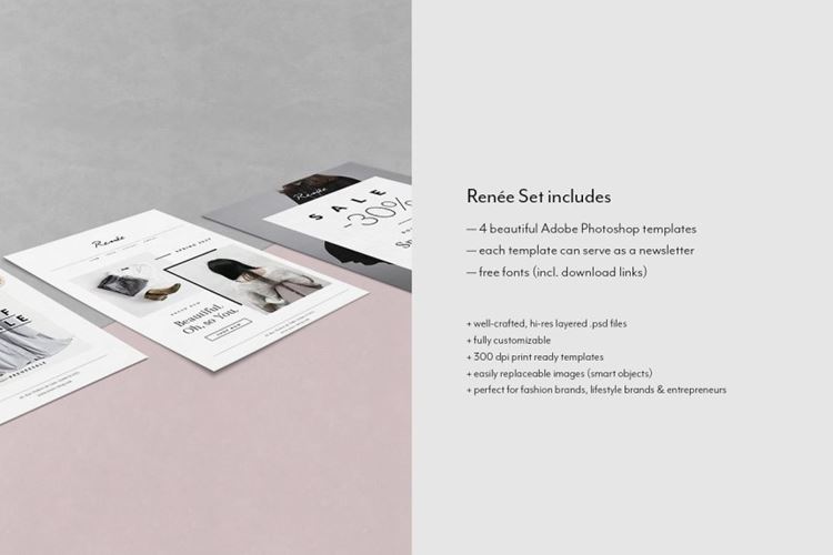 图穷联素材库 » 4个时尚的明信片式的海报传单模板 Fashion Postcard Flyers Renée