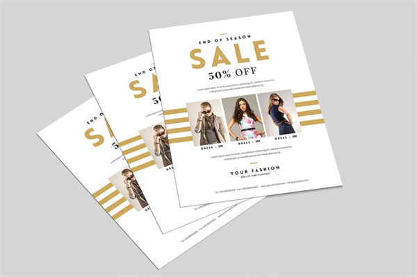 高端时尚打折促销SALE海报传单DM设计模板Minimal GOld Fashion Flyer