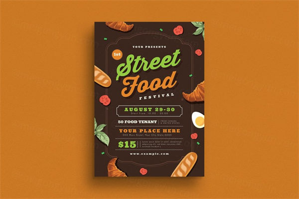 图穷联素材库 » 优雅多用途的美食节海报传单DM设计模板 street-food-festival-flyer