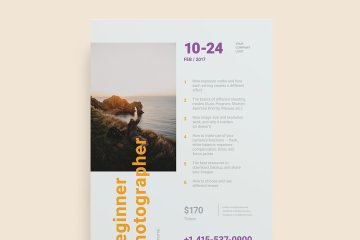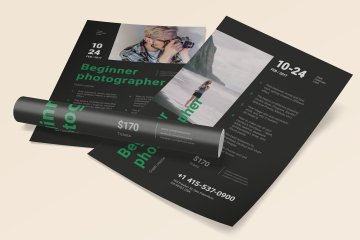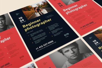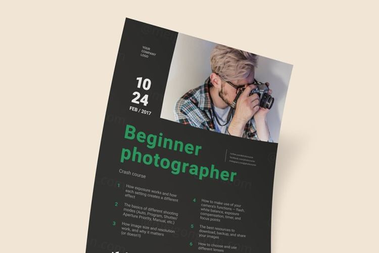 图穷联素材库 » 摄影自由工作者/在线教育培训推广单折页传单矢量模版素材 Beginner Photographer