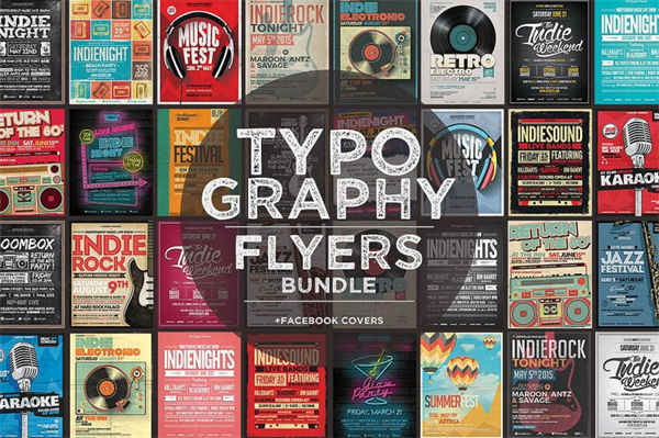 复古海报排版设计素材17 Typography Flyers FB Covers