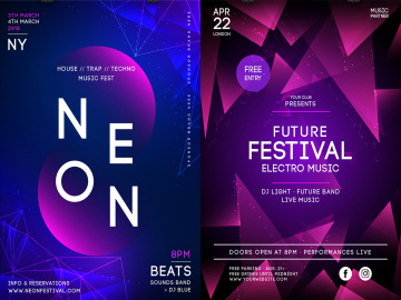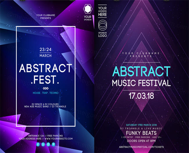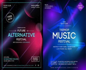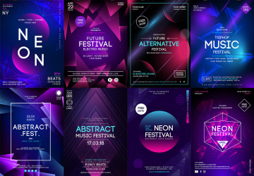 图穷联素材库 » 8张概念电音节日矢量海报素材 Awesome Festival Poster Templates (AI , EPS)