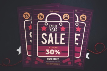 时尚高端流行色紫色玫红色新年圣诞节圣诞海报宣传单DM设计模板end-of-year-sale-flyer