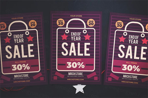 图穷联素材库 » 时尚高端流行色紫色玫红色新年圣诞节圣诞海报宣传单DM设计模板end-of-year-sale-flyer