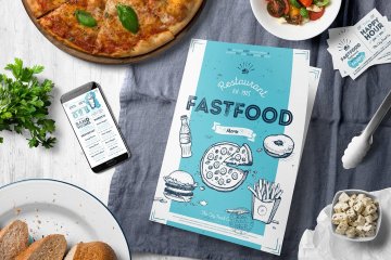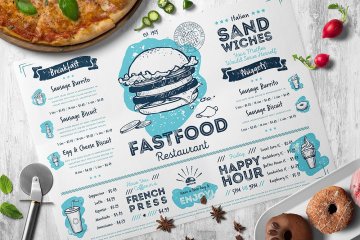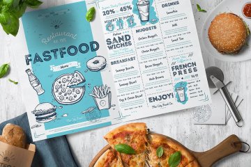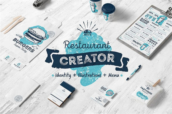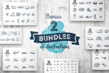 这套插画和模版非常适合西餐厅、酒吧和咖啡馆菜单设计和品牌标识物料设计。手绘的插画让整个设计显得专业和十分有范儿。套装内还包含了快餐和 BBQ 插画(超过100个元素)
