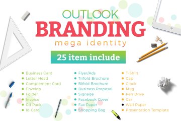 OutLook是非常强大的品牌识别包,它使用任何类型的公司业务。此套装包括25件物品,可根据您的选择进行完全编辑和定制。它将节省您的大量费用和金钱。您也可以将其用于客户端项目。