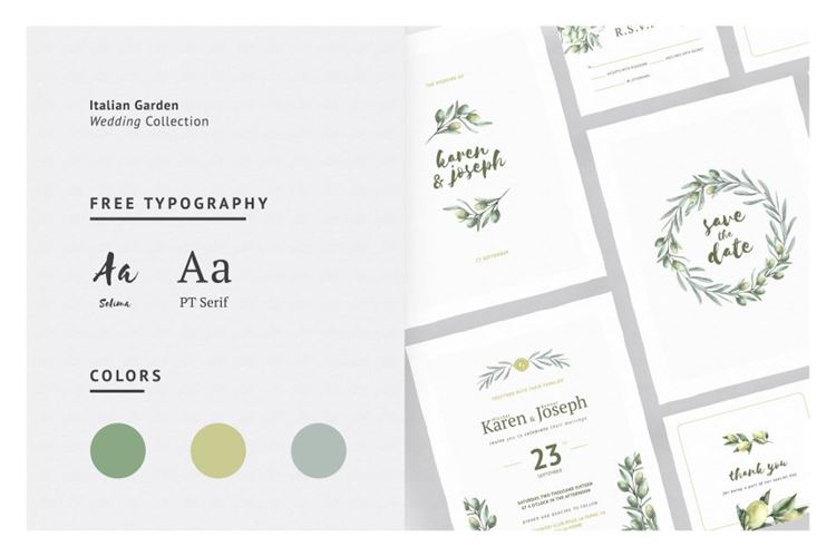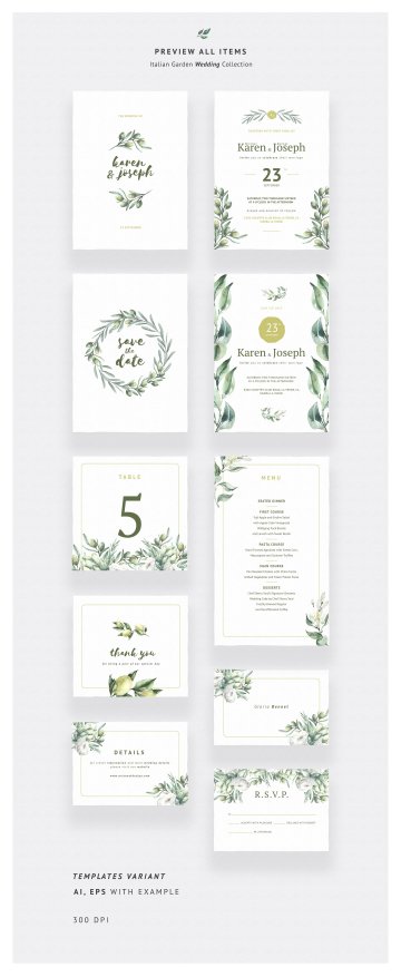 手绘水彩意大利花园浪漫婚礼物料设计模板 Italian Garden Wedding Collection