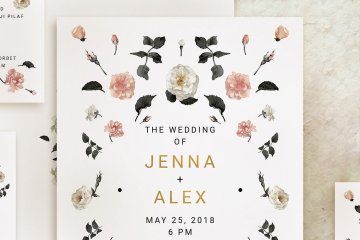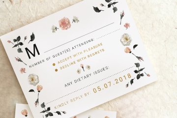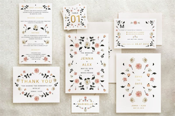 玫瑰金花卉婚礼邀请函设计套装 Rose Gold Wedding Invitation Suite