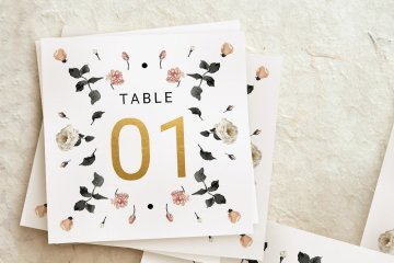 这是一套精致的婚礼邀请套餐,由对称的花朵和金色调制成,融入简约典雅的风格,适合您的婚礼设计!