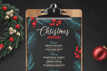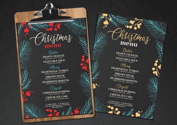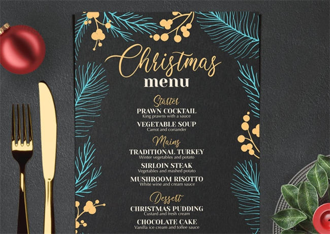 新年圣诞晚餐派对菜单宣传单DM海报设计模板,Photoshop和Illustrator文件