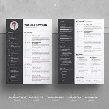 简历/简历 - TD,现代和专业设计,包括1&2简历/简历模板和求职信,免费名片。通过Microsoft Word轻松编辑。所有细节都可以完全自定义并永久使用。您可以根据自己的喜好对这些模板进行任何调整。