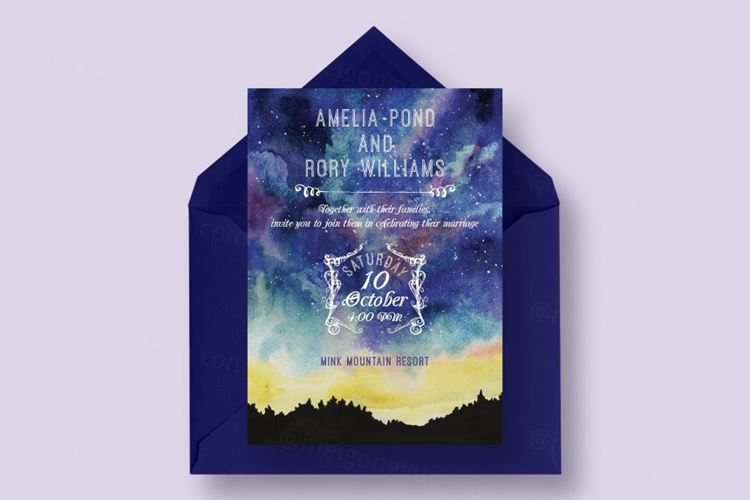 图穷联素材库 » 星空主题婚礼邀请函设计模板 Starry-Sky-Wedding-Suite