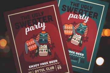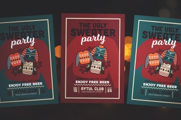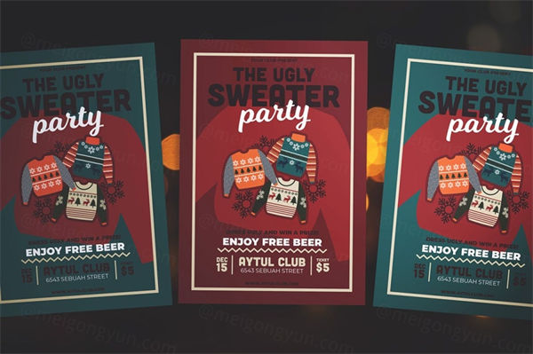 冬天冬季毛衣派对party新年圣诞节宣传单DM海报设计模板ugly-sweater-party-flyer