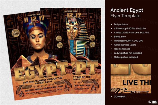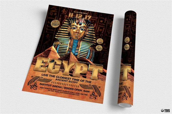 图穷联素材库 » 古埃及历史考古主题传单海报PSD模板Ancient-Egypt-Event-Flyer-Template