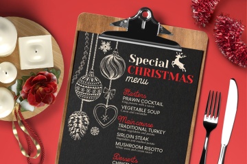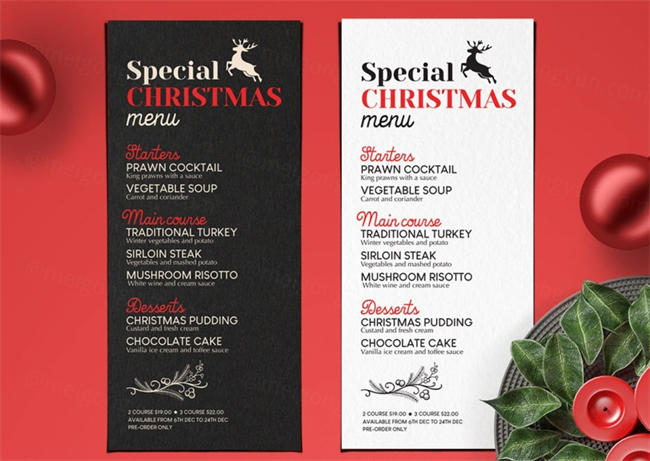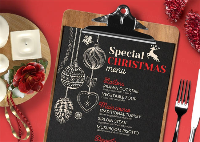 图穷联素材库 » 时尚高端圣诞节新年海报DM宣传单设计模板 christmas-restaurant-menu