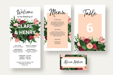 鲜花爆裂婚礼套房包括:婚礼邀请,回复,信息卡,保存日期,程序,菜单和谢谢,表号和地方卡!