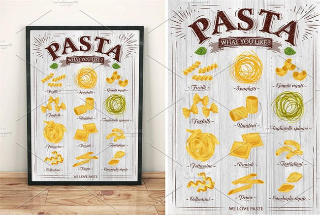 图穷联素材库 » 意大利面食面馆海报模板 Pasta-Poster