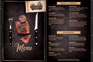 烧烤餐厅菜单模板是一个现代和有吸引力的psd菜单模板设计适合任何烧烤餐厅,烧烤酒吧或酒吧。所有元素和文字都是可编辑的。