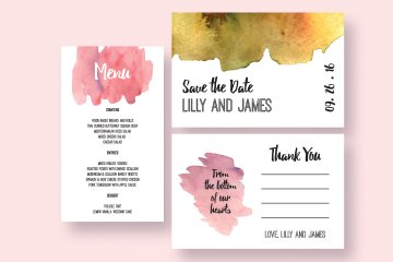 水彩纹理背景婚礼设计套件合集 Artsy-Wedding-Invitation-Collection