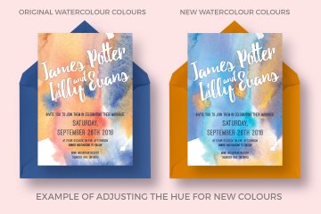 所有文本和字体颜色都是可编辑的。水彩颜料描边是手绘的,并且不完全可编辑,虽然颜色仍然可以通过改变色调来修改(虽然这是非常有限的)。