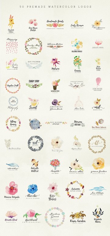 50枚水彩风格Logo模板 50-Premade-Watercolor-Logos