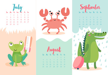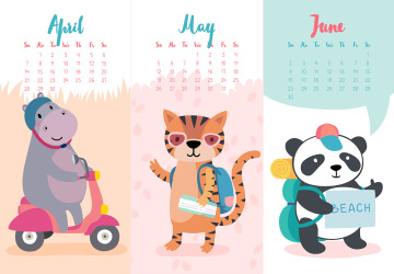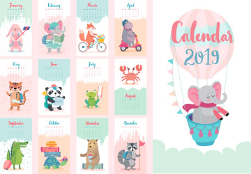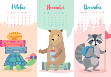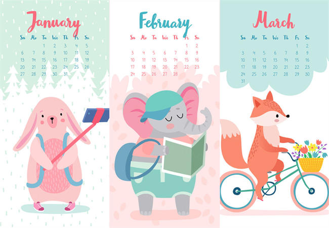 图穷联素材库 » 年可爱的卡通旅游主题森林动物创意手绘风格日历矢量模版
