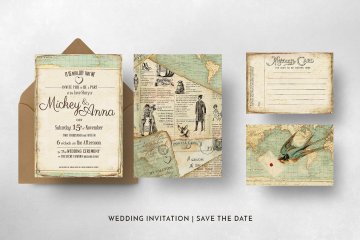 复古旅行纸张卡片模板设计素材 Vintage-Journey-Wedding-Suite