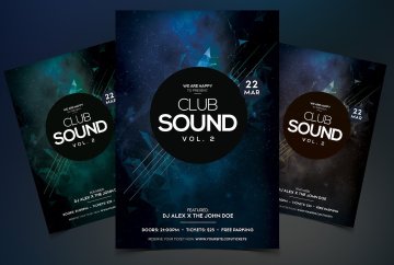 极简主义的音乐类活动宣传海报模板 Club_Sound_2_PSD_Flyer_Templates