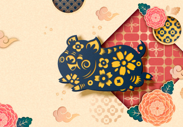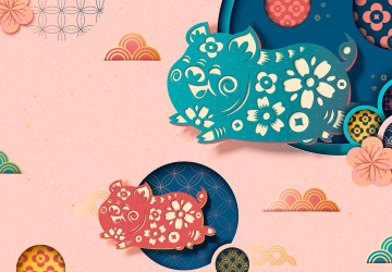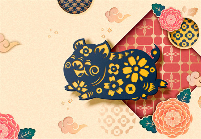 图穷联素材库 » 猪年传统生肖牡丹纸艺风格新年横幅海报矢量素材【EPS、JPG】