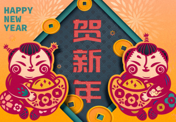 年传统窗饰上书法贺新年迎新春年画招贴矢量海报素材