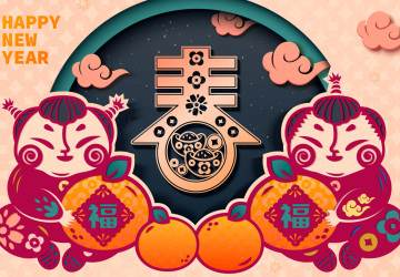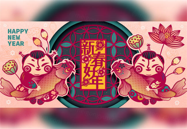 图穷联素材库 » 年传统窗饰上书法贺新年迎新春年画招贴矢量海报素材